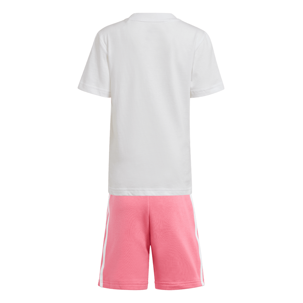 adidas DNA is all over this kids' t-shirt and shorts set. The tee is done in soft cotton jersey and the shorts in ultra-comfortable French terry. Both materials set kids up to take on the day feeling good.
