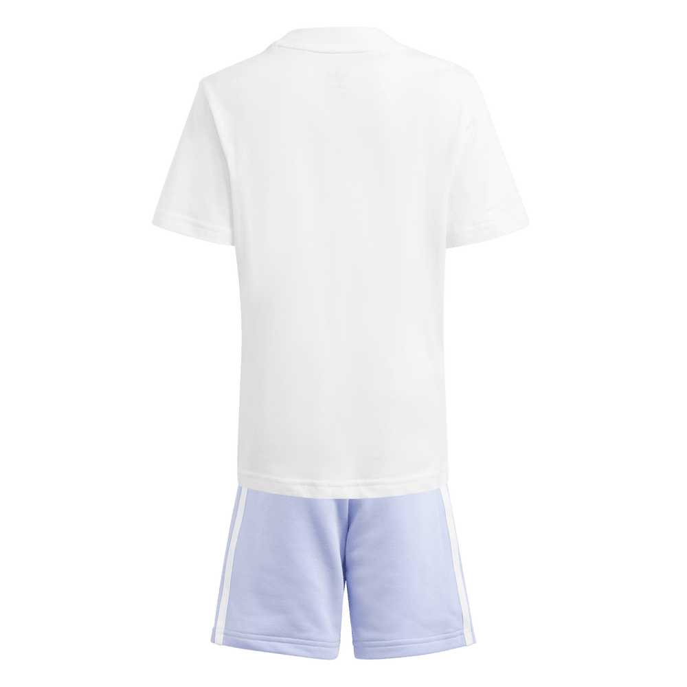 adidas DNA is all over this kids' t-shirt and shorts set. The tee is done in soft cotton jersey and the shorts in ultra-comfortable French terry. Both materials set kids up to take on the day feeling good.