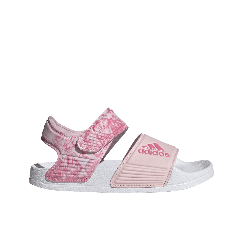 Inspired by classic Adilette slides, these kids' adidas sandals are perfect for sunny days of play in and out of the water. A hook-and-loop strap creates an easy on and off. The quick-drying upper lets them play in comfort until they're back on dry land.