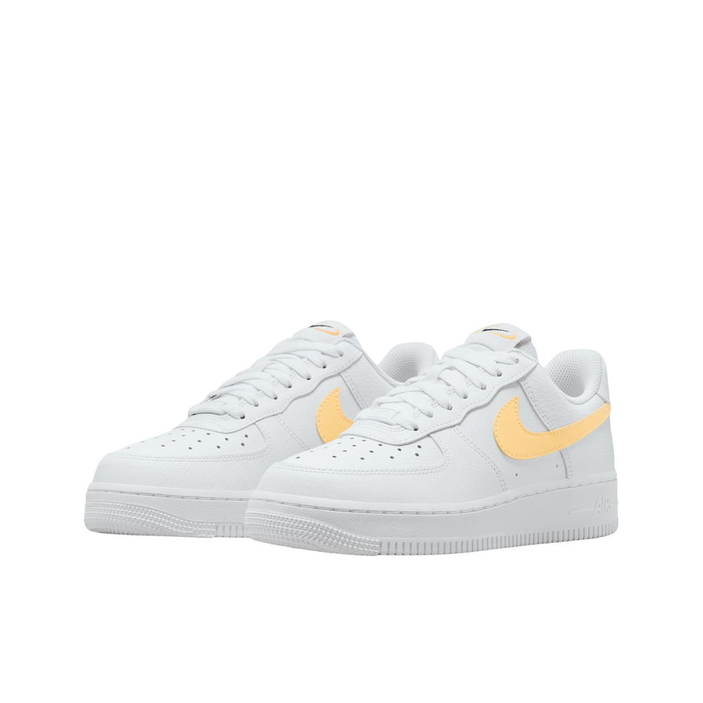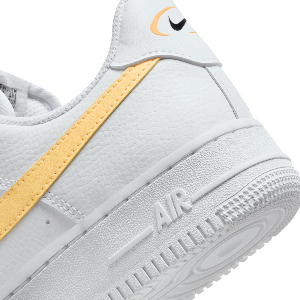 This low-top AF1 is crafted with a white tumbled leather upper, with matching laces, nylon tongue, heel tab and mesh sock liner. The highlight of the shoe is the melon tint hue seen on the signature profile Swooshes that sweep across both the medial and lateral mid-panels. This colour repeats on the branding on the tongues, heel tabs and the insoles. An all-white sole unit with pivot points on the toe and heel finishes off the look of this shoe.