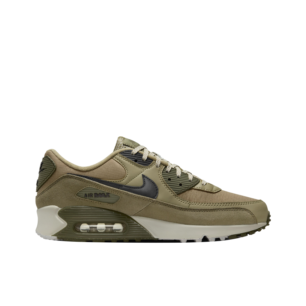 The Nike Air Max 90 Neutral Olive dresses the Air Max 90 with mixed-material panels in neutral, earthy tones. Originally made for performance running, this sneaker maintains its classic 1990s silhouette and boasts exposed Air Max units in the heel.