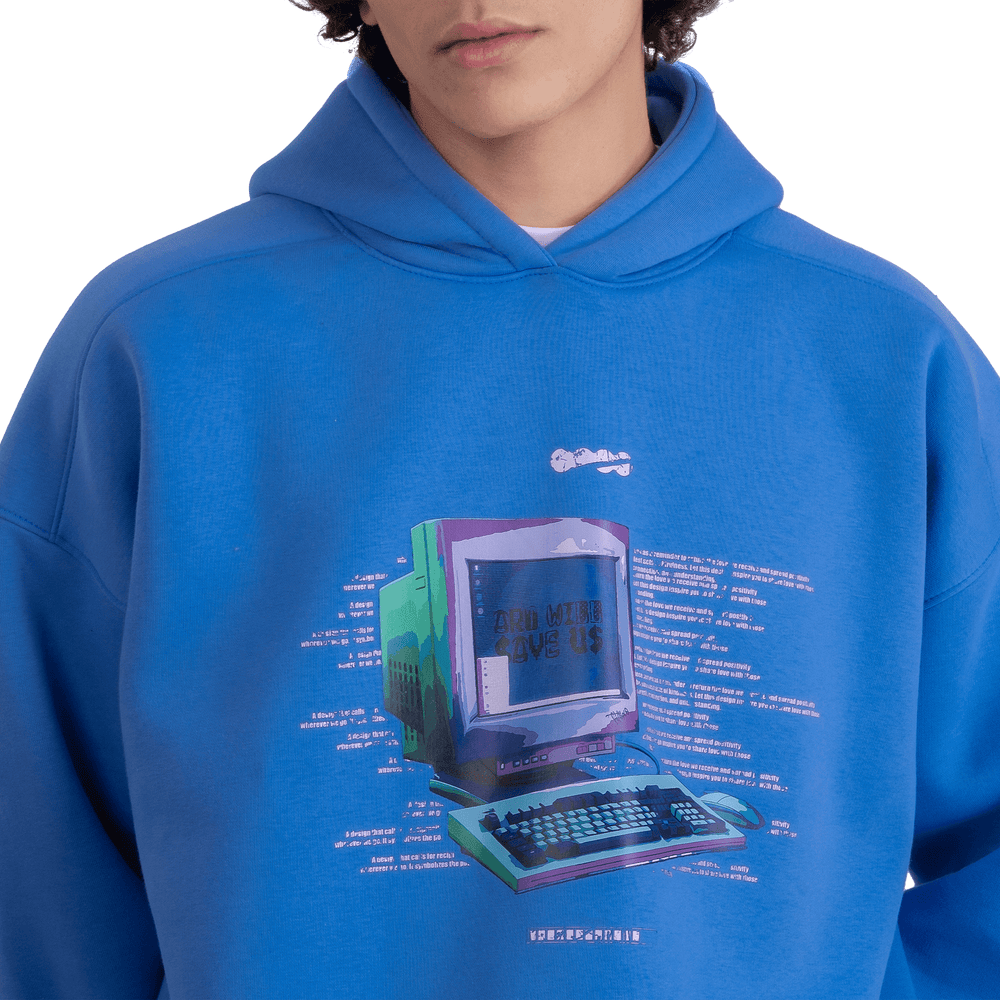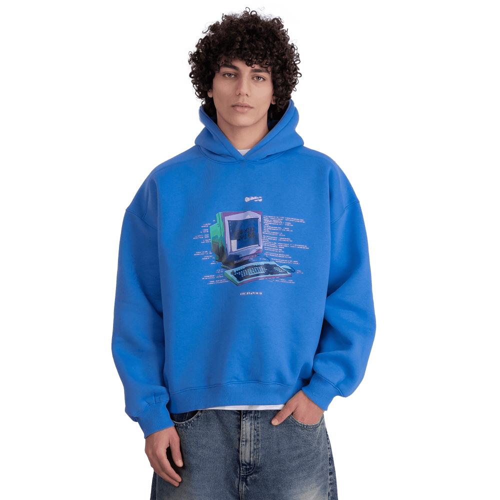 STEP INTO THE NOSTALGIC REALMS WITH THE ART WILL SAVE US HOODIE. FEATURING A VINTAGE COMPUTER GRAPHIC ON THE FRONT, THIS BLUE UNISEX HOODIE BRINGS TOGETHER A CLASSIC AND COMFY STYLE. DESIGNED WITH A BOXY FIT, IT OFFERS THE PERFECT BALANCE OF STYLE AND EASE FOR EVERYDAY WEAR.