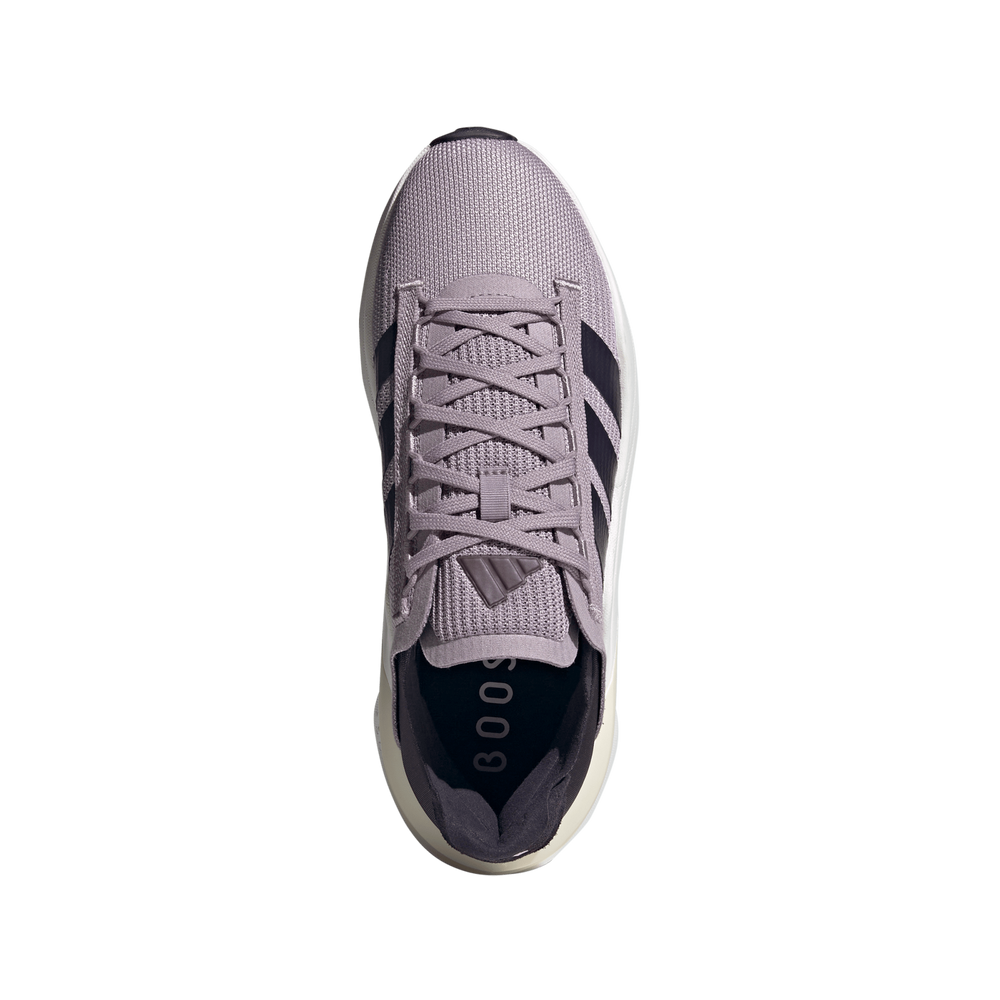 Stride confidently in the Avryn_X shoes, a woman's hybrid footwear designed for casual street running. With a Boost and Bounce midsole inspired by origami, these low-top shoes offer an engineered mesh upper for added breathability alongside a modern TPU heel counter for stability. A lace closure and microsuede heel flip tab add to the sleek design, while the unique eyestay design solidifies its status as the future of classic sportswear.