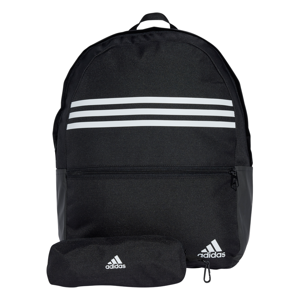 Classic 3-Stripes in gradient colours give this adidas backpack standout style. Stay organised with all the pockets you need, including one on the front and one on each side. The coated bottom ensures it stands up to daily use, and adjustable shoulder straps make comfort a priority. The coordinating pencil case zips for easy access to writing utensils or other small essentials.