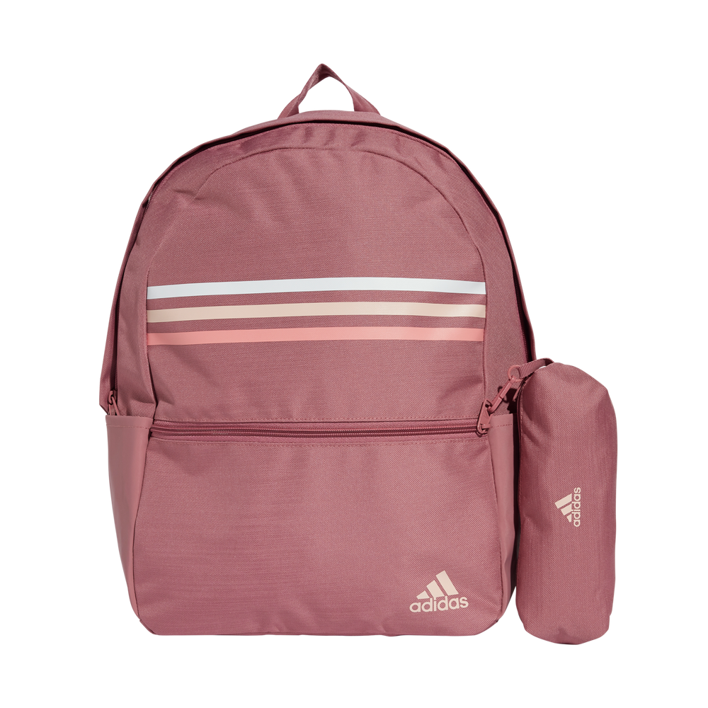Classic 3-Stripes in gradient colours give this adidas backpack standout style. Stay organised with all the pockets you need, including one on the front and one on each side. The coated bottom ensures it stands up to daily use, and adjustable shoulder straps make comfort a priority. The coordinating pencil case zips for easy access to writing utensils or other small essentials.
