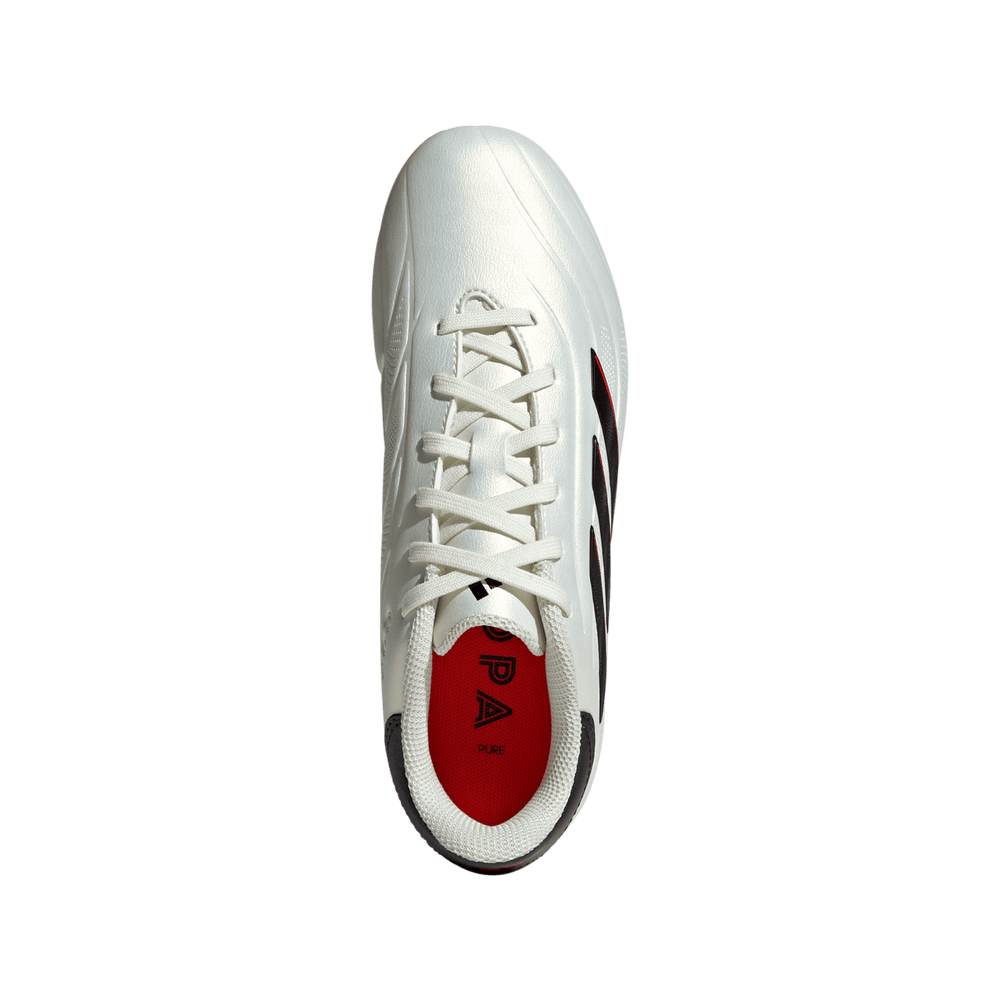 To truly run a game, you need to keep your teammates close and the ball closer. Find the freedom to conduct play in comfortable, classy adidas Copa Pure II. Boasting heritage details and a synthetic leather forefoot, these juniors' football boots look and feel iconic. The firm ground outsole keeps your play stylish on dry natural grass.