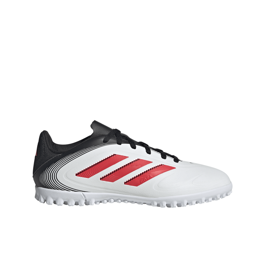 Play the beautiful game your way in juniors' adidas Copa Pure 3 Club boots designed for comfort and connection. The soft synthetic upper comes with a leather-effect grain texture for a classy look and a 3D print on the forefoot for a confident touch. That lug rubber outsole, meanwhile, makes for cultured football on artificial turf courts.