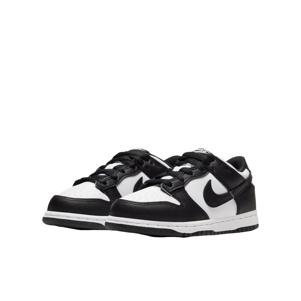 Made for little Kidss, the Nike Dunk Low PS ‘Black White’ offers an elemental colorway of the vintage silhouette originally designed for the hardwood. The leather upper combines a crisp white base with contrasting black overlays and a matching black Swoosh. Cushioned comfort and ease of movement are made possible by a padded collar and nylon mesh tongue, the latter decorated with a woven Nike tag for branding that stays true to the shoe’s ‘80s roots.
