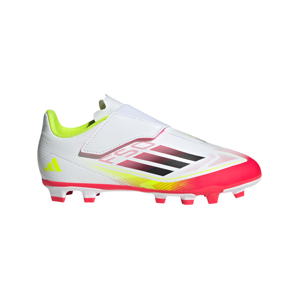 Push your pace to the limit in lightweight adidas F50 footwear engineered for speed. These juniors' Club football boots keep you comfortable on the move with a Fiberskin upper for support and a wide hook-and-loop strap to fine-tune lockdown. Underneath, a versatile outsole propels you to lightning-fast play on firm ground and artificial grass surfaces.
