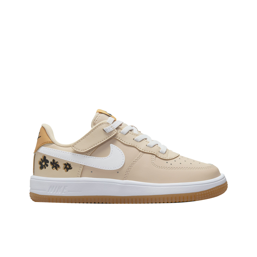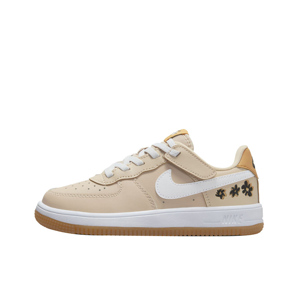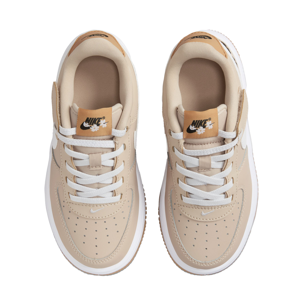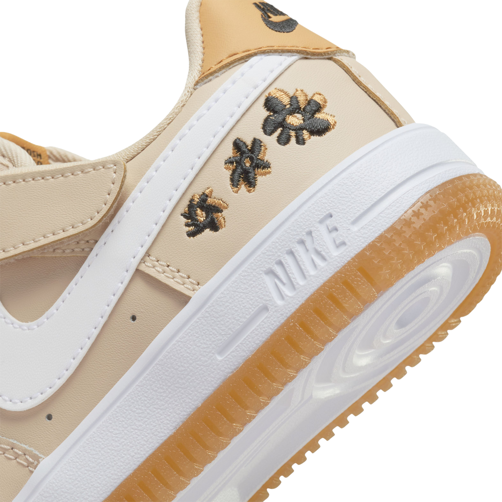Powered by flowers, these special-edition sneakers are all about stopping to appreciate the little things—like getting out of the door fast. The laces on these shoes are just for show. The top lace loops are attached to a hook-and-loop strap so kids can fasten them with ease while still enjoying the traditional look of the AF-1. But these aren't just easy for kids to put on, we designed them around kids' feet for overall comfort too.