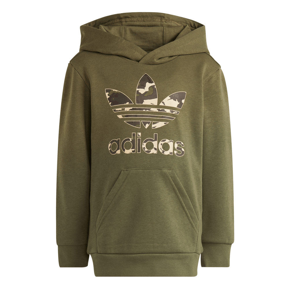 A fresh take on a classic. This kids' adidas set features a hoodie with a large, camo-print Trefoil and matching sweat pants. Pockets on both pieces let them keep their favourite stuff at hand.
