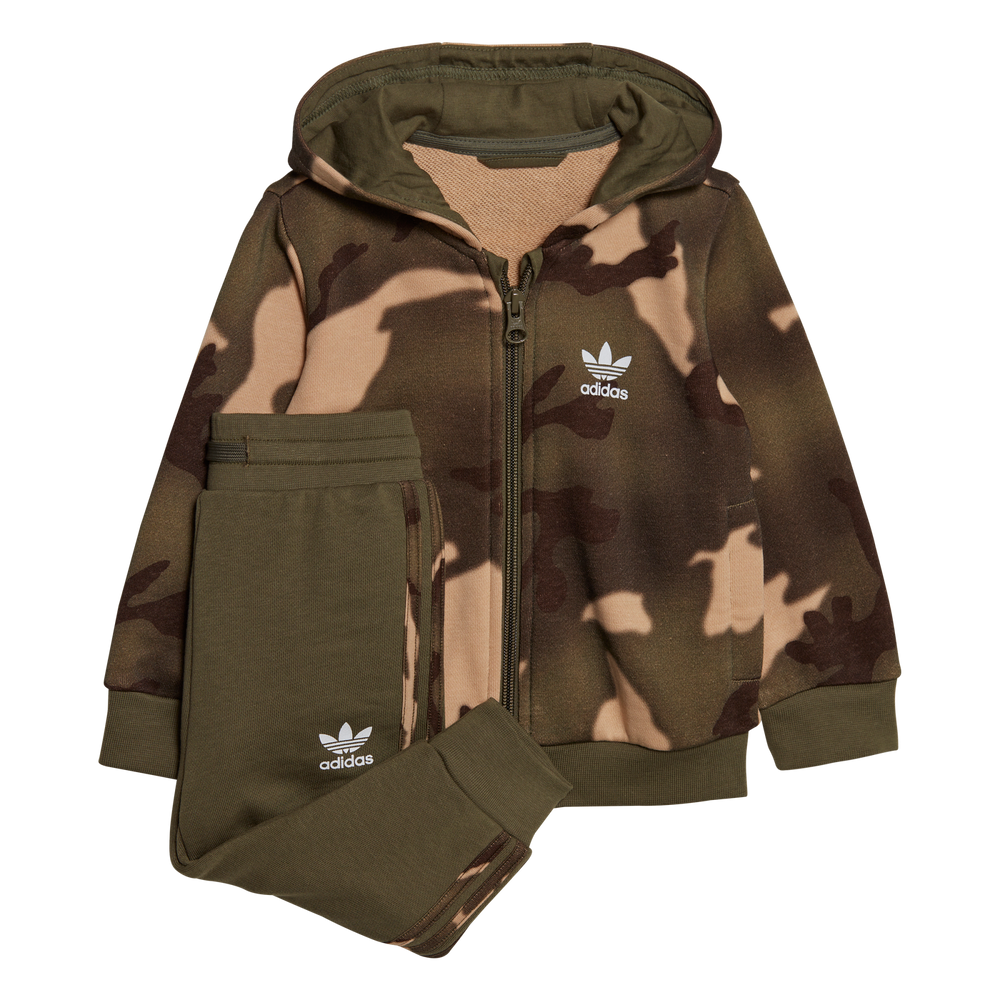 This infants' adidas set in camo print is perfect for little ones on a mission to have fun. Or to nap. Both the full-zip hoodie and sweat pants are made of a durable, comfortable cotton blend to keep them cosy all day long. No matter what adventures they get up to.