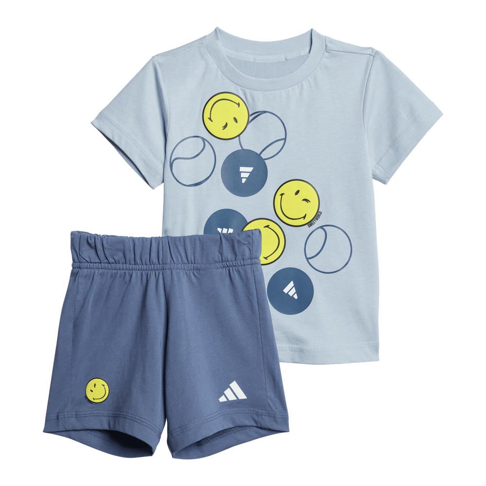 The day is always better when your little one is wearing a smile. That's why this infants' adidas joggers set is splashed with a joyful smiley face graphic designed in collaboration with the Smiley Company. Both the shorts and t-shirt are made of soft cotton fabric for cosy comfort all day long.