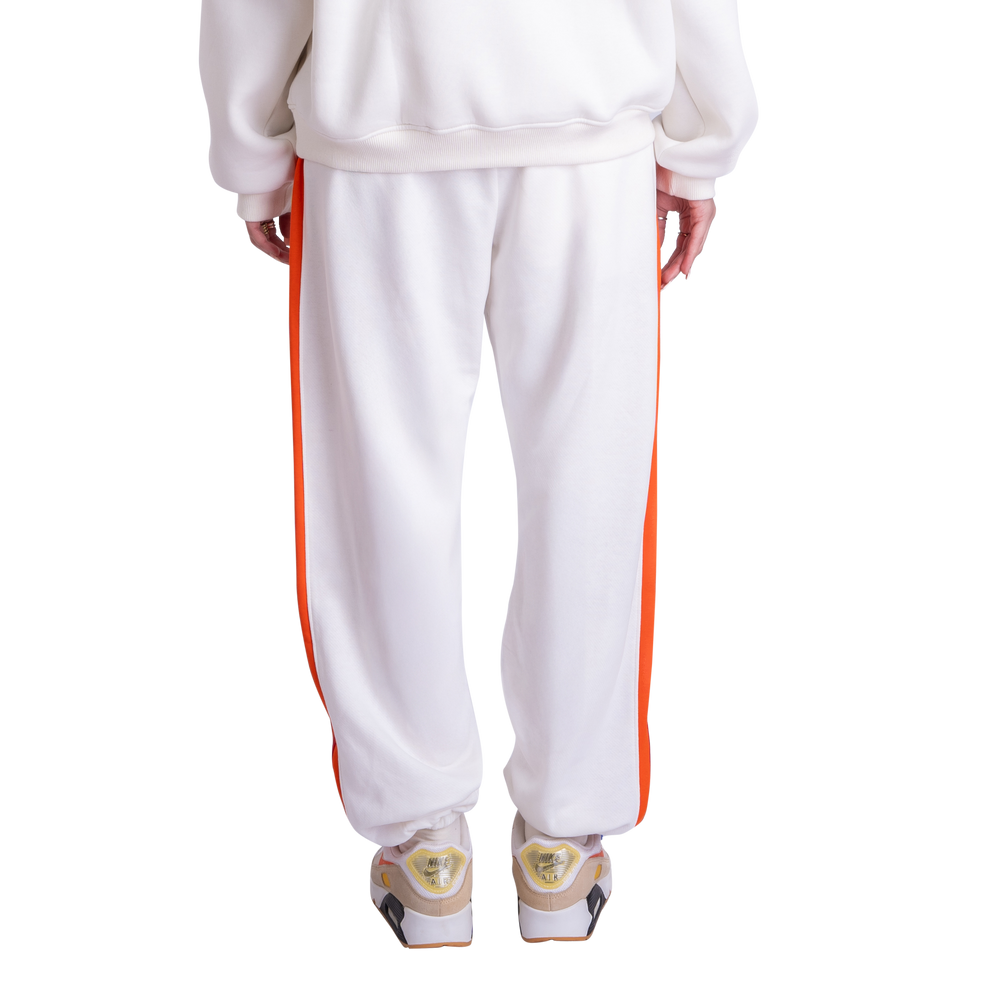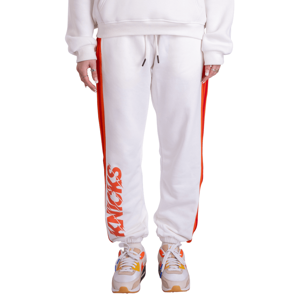 Fitsole Knicks Sweatpants – Off-White Game-ready, street-approved. The Fitsole Knicks Sweatpants bring the perfect mix of comfort and statement style. Featuring a clean off-white base with bold orange and white side stripes, these unisex cuffed sweatpants rep the iconic Knicks logo on one leg—because legends never fade. Designed for a relaxed fit, they’re built for movement, whether you're courtside or couchside.