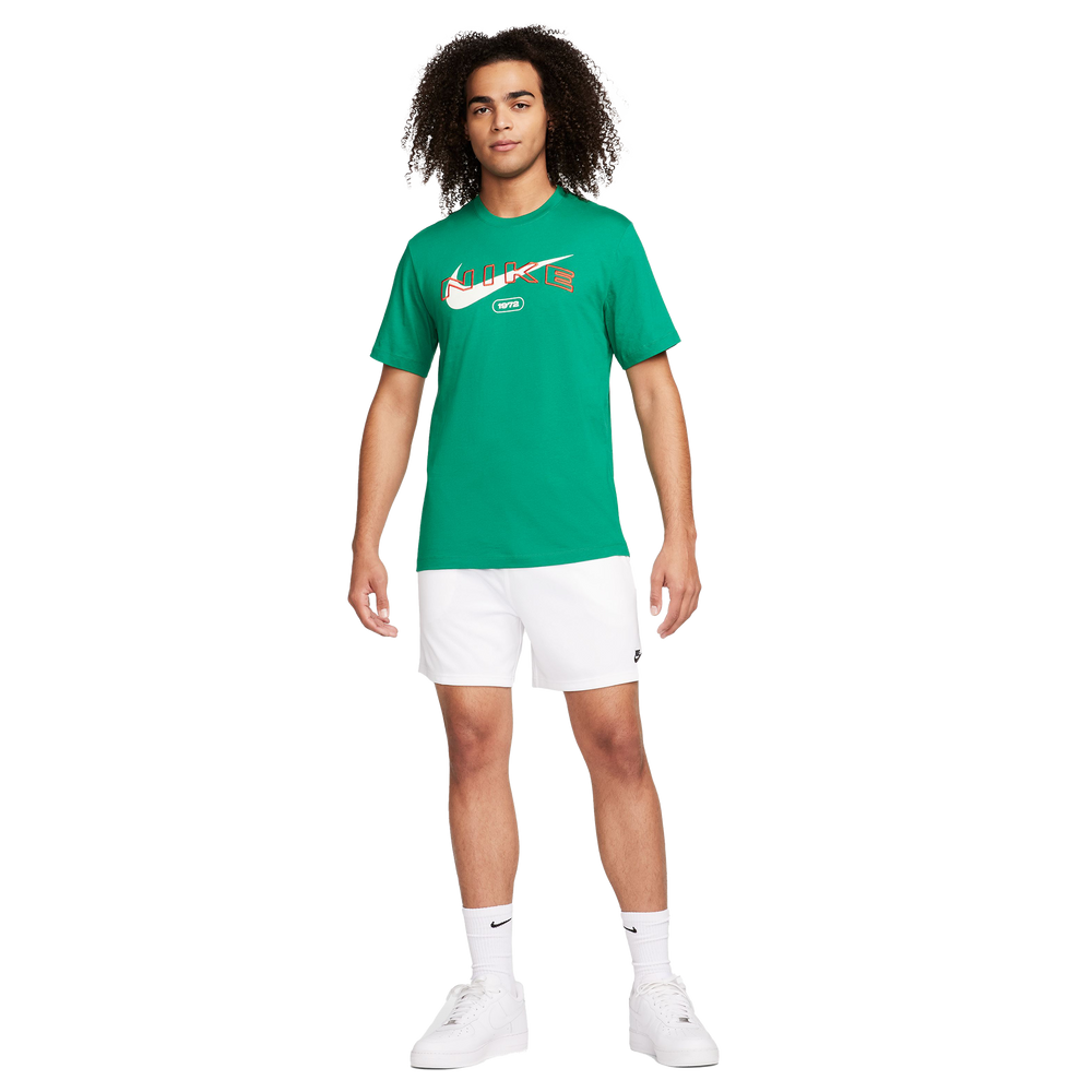 men's short sleeve T-shirt is made from lightweight cotton for maximum comfort. You will use it primarily for leisure wear - it goes well with, for example, jeans, shorts or sweatpants. On the front, the t-shirt is decorated with beautiful graphics with Nike motifs and the company's founding date.