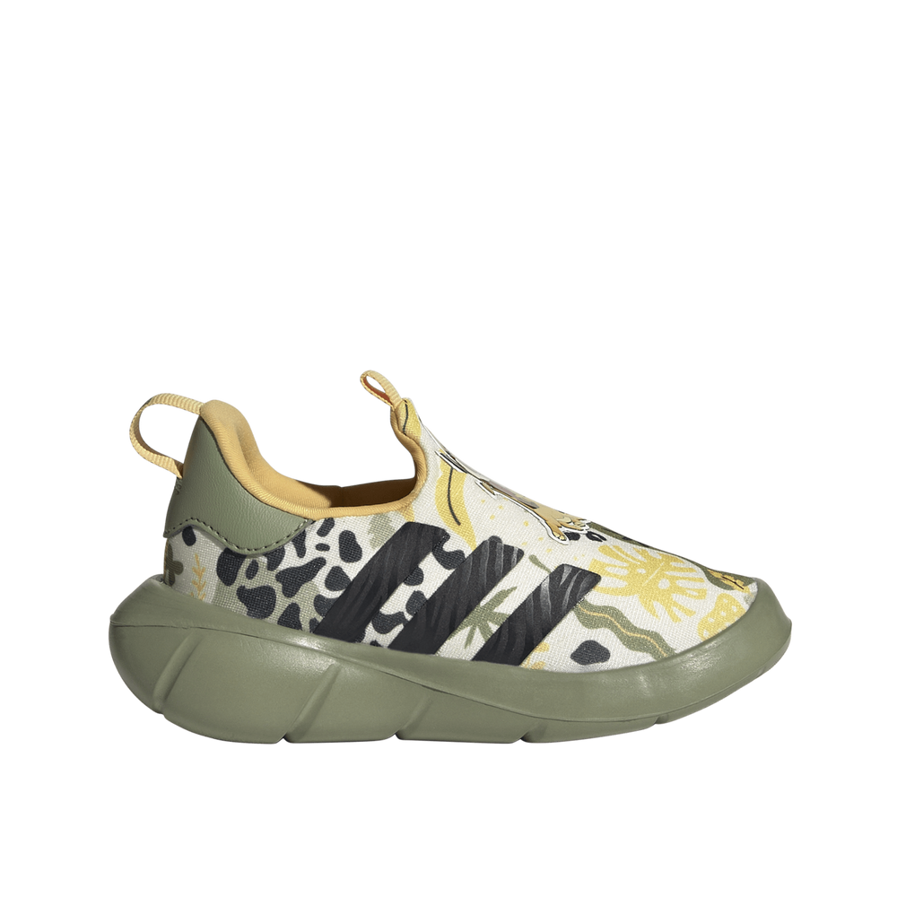 From the backyard to the savanna, little cubs are ready to explore in these infants' adidas sneakers. They fit both feet so toddlers can pull them on and get going without fuss. A soft lining hugs the foot in place while flexible EVA cushioning makes every step feel effortless. Graphics inspired by Disney's "The Lion King" add a playful touch.