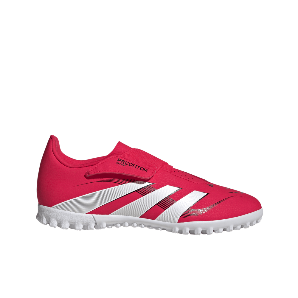 Go into every game knowing you'll score in juniors' adidas Predator Club boots crafted for goals. Secured by a wide hook-and-loop strap, their synthetic upper is lined with soft textile for a comfortable feel. Turn them over and you'll find a lug rubber outsole designed for precision football on artificial turf pitches.