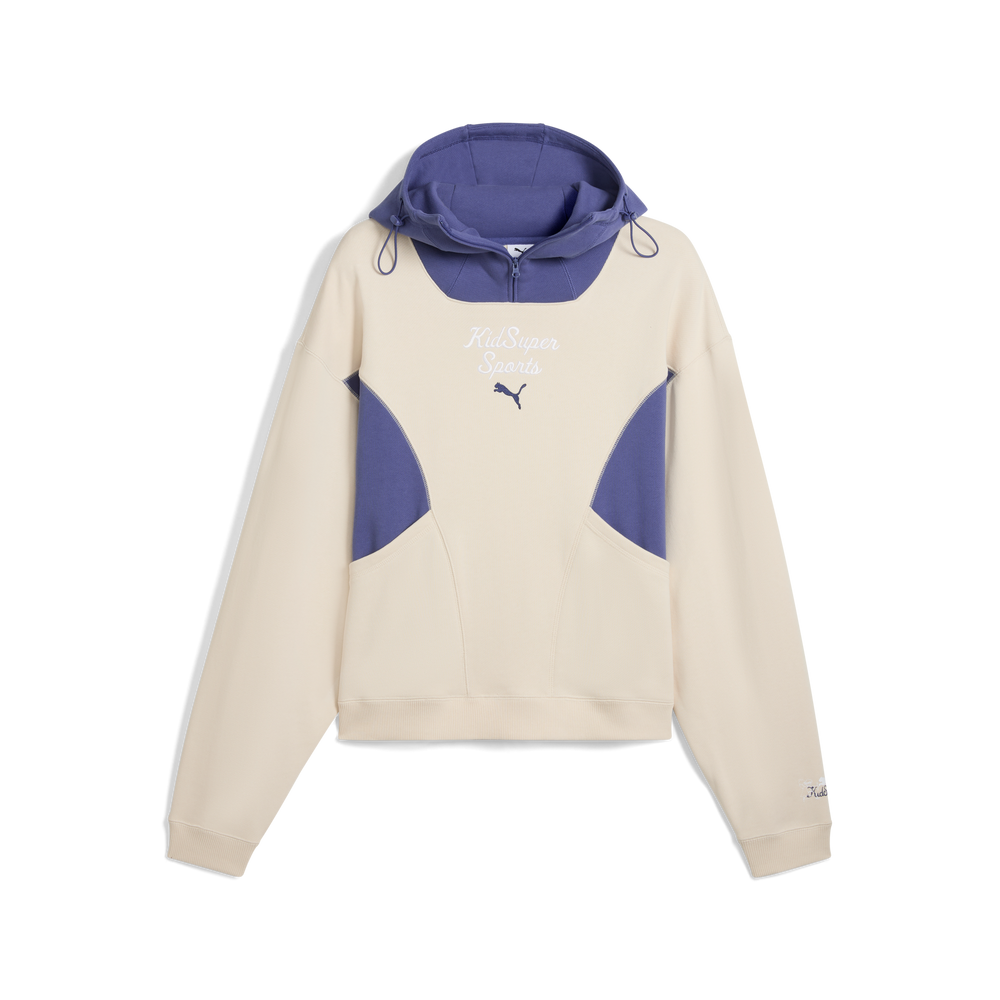 The latest PUMA x KIDSUPER collection is here. This season’s designs capture Colm Dillane’s playful and eclectic spirit, with graphics inspired by his handwriting and vibrant, distinctive artwork. Pulling inspiration from the football world, pieces include a new take on the King Indoor sneaker, as well as football jerseys, shorts, and trousers. Part of the collection, this hoodie has ribbed cuffs and hem for extra cosiness alongside a hood with zip and bungee drawcord for an adjustable fit.