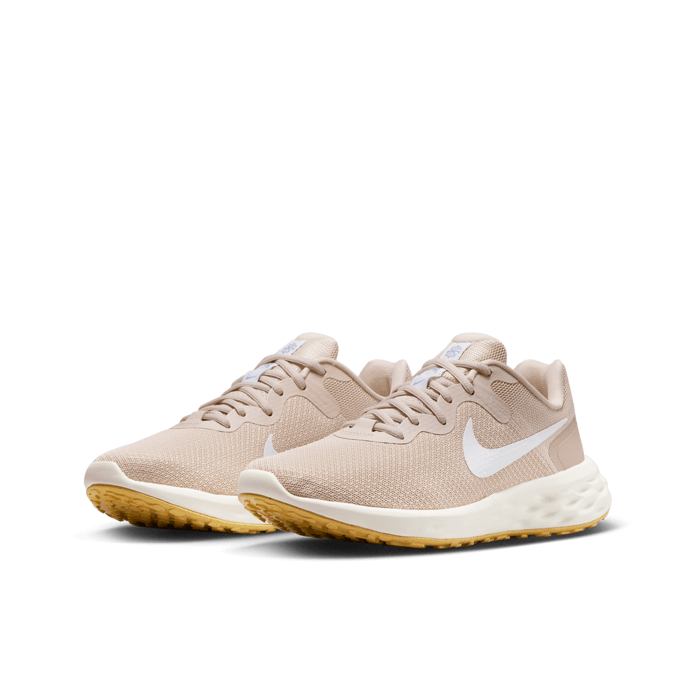 Made from at least 20% recycled material by weight, old materials find new beginnings. Now you can find yours. Set the pace at the start of your running journey with the plush feel of the Nike Revolution 6. We know comfort is key to a successful run, so we made sure your steps are cushioned and flexible for a soft ride. It's an evolution of a favourite, with a breathable design.