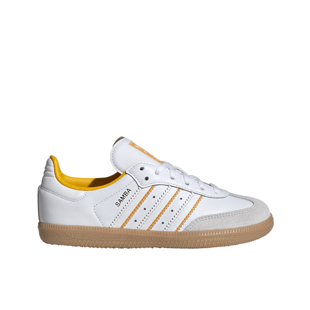 These adidas Samba OG shoes are a timeless classic. The serrated 3-Stripes, T-toe design and gum rubber outsole keep the iconic look of the 1950s football original. A cushioned sockliner provides comfort in every step so kids can play all day.