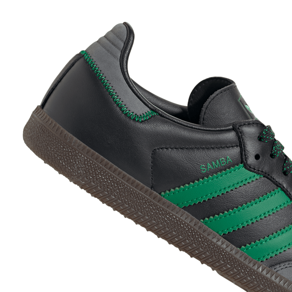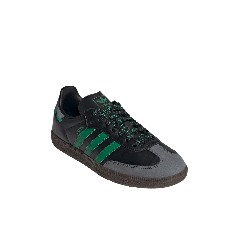 The Samba OG shoes revive the iconic indoor football trainer from the 1950s. Premium leather and suede elevate the upper and set off the classic serrated 3-Stripes. The zigzag stitched heel and speckled toe design add subtle details.