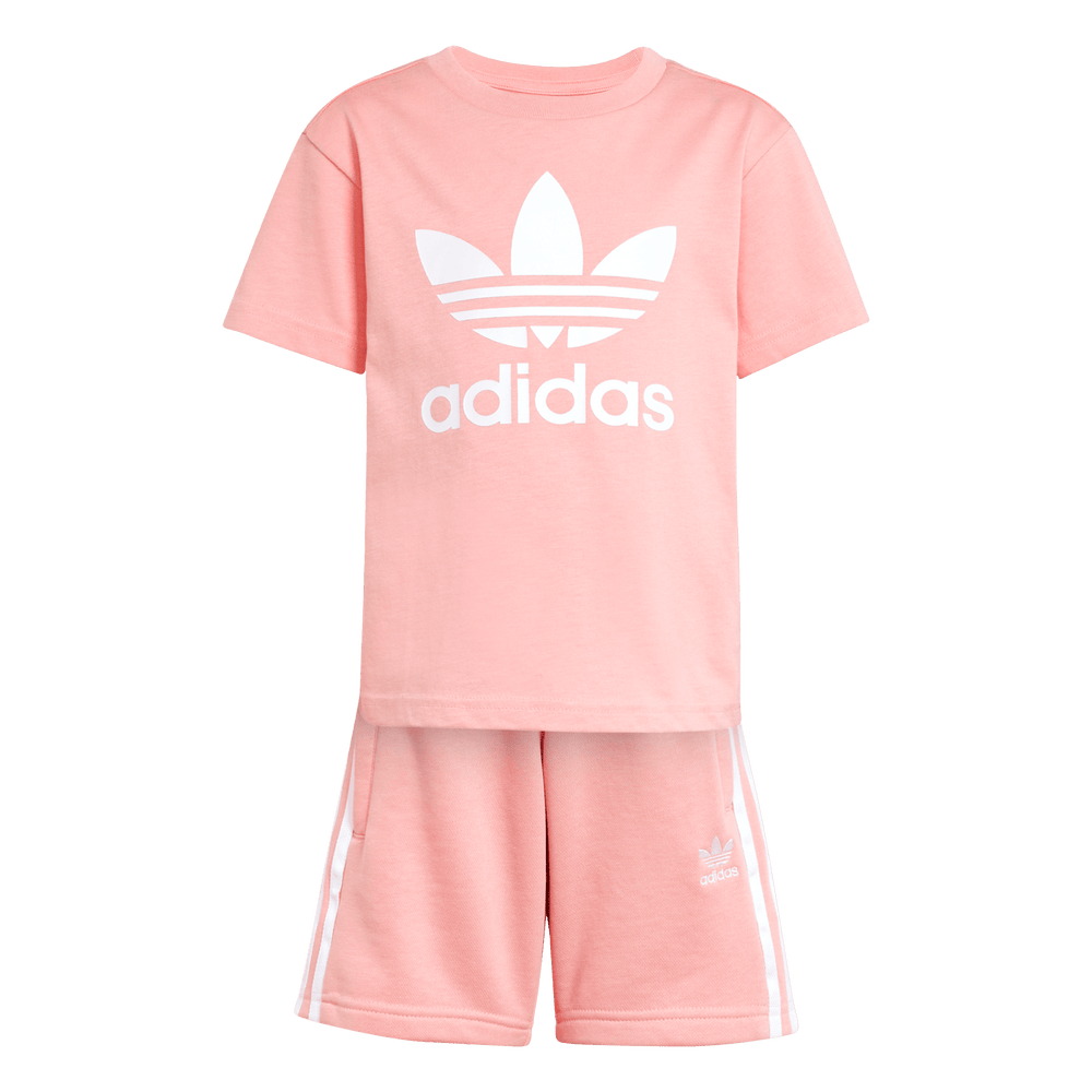 This kids' adidas shorts and tee set features a soft cotton single jersey build and a drawcord elastic waist for all-day comfort. From the oversized Trefoil on the chest to the 3-Stripes running down the legs its rooted in sport and style. Destined to become a go-to warm-weather outfit, this casual set is an everyday all-in-one outfit that's ready when they are.