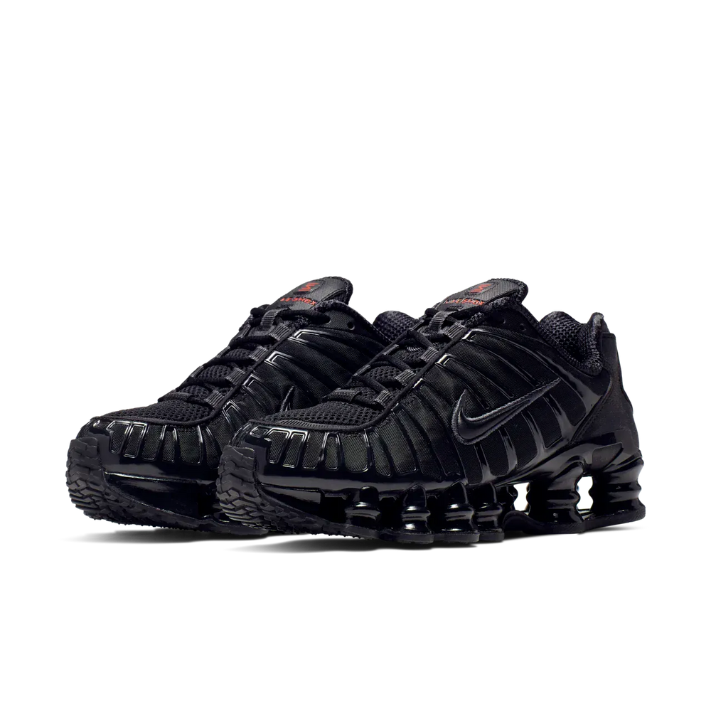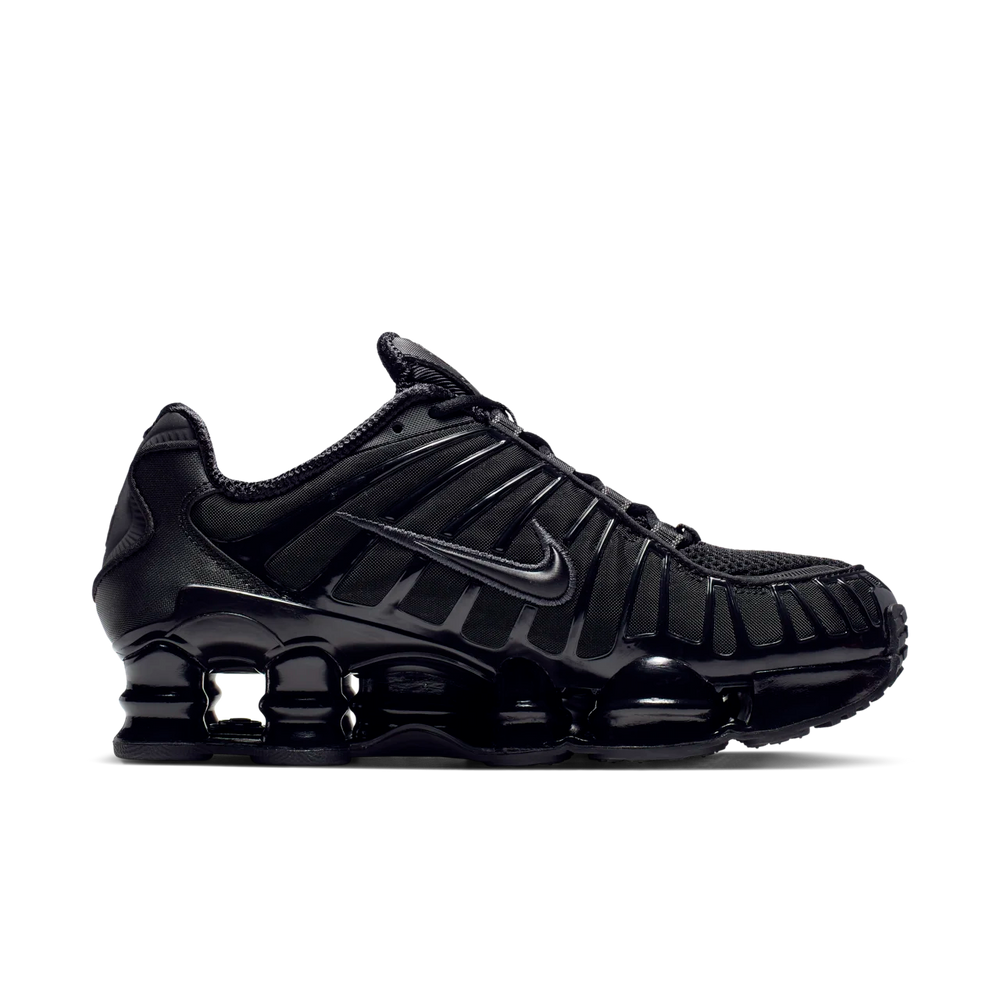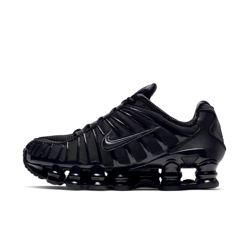 As if you needed another reason to wear black. This moody take on the early-noughties icon comes decked out in the statement-making shade you love. Made famous by its mechanical cushioning and on-court prowess, the head-turning design also has plenty of runway appeal. Glossy finishes, reflective design detailing and textured mesh underlays highlight every step, while flashes of Max Orange boost the energy.