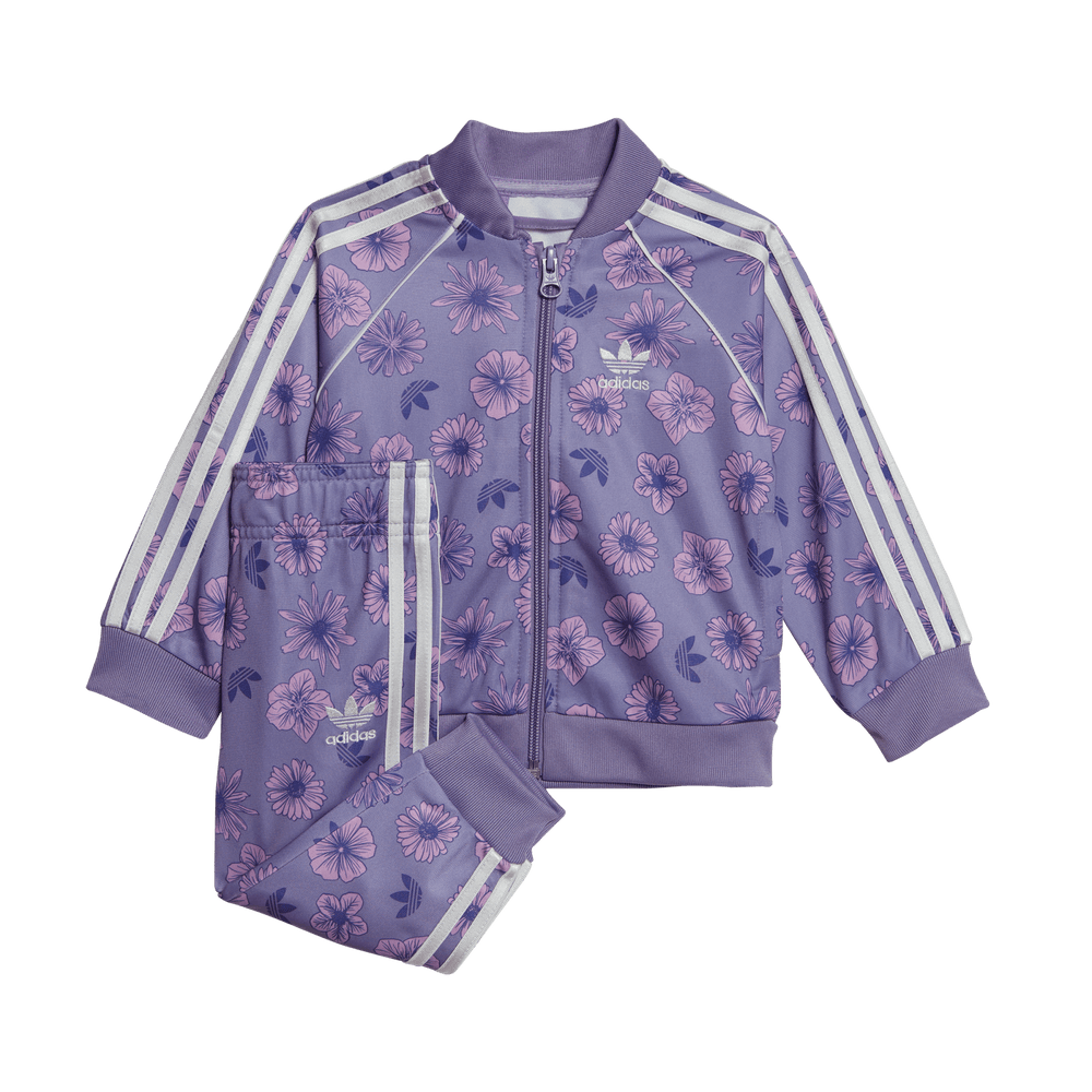 This infants' adidas track suit has a fun allover floral print for a fresh look. Dress it...
