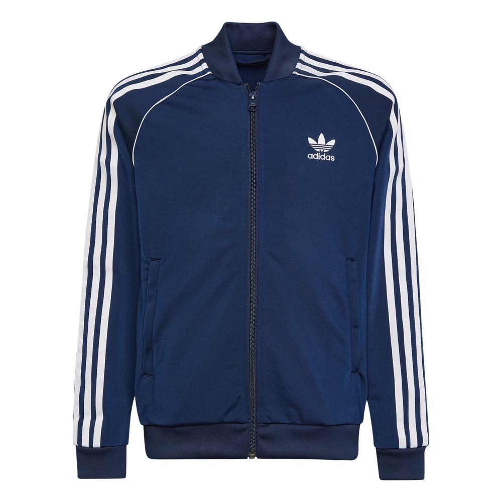 You've got mad respect for the past. But definitely rooted in the future. Dress for both in this juniors' track jacket. Go all-in on legit adidas looks with iconic 3-Stripes and a hit of piping. The signature sheen of tricot finishes your OG vibe.