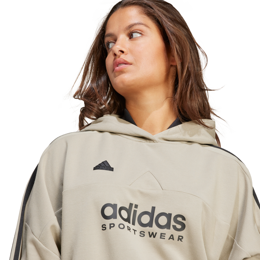 Get ready to take on the day. This women's hoodie features a loose shape and comfortable long sleeves with 3-Stripes. Soft fabric creates a cosy feel, perfect for all-day comfort during your everyday activities. Meanwhile, the classic hoodie design will keep you looking sharp no matter where you go.