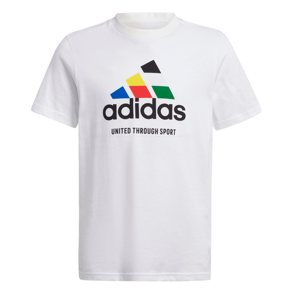 Whether you're cheering from the stands or watching the match at home, this juniors' adidas t-shirt lets you show off your love of sport. The bold graphic spanning the chest celebrates the beautiful game and your favourite squad, while ultra-soft cotton keeps the vibe casual. No matter how you style it, this tee is sure to earn nods of approval from fellow supporters.