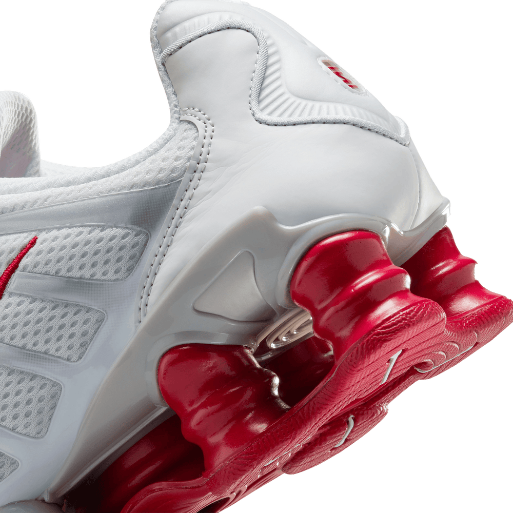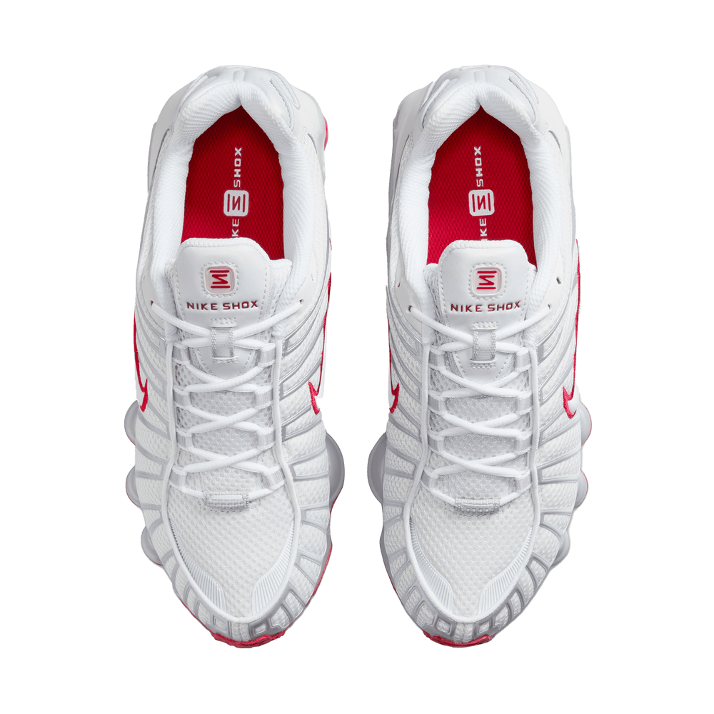 Take mechanical cushioning to the next level. A recrafted version of the 2003 icon, the Nike Shox TL features breathable mesh in the upper and full-length Nike Shox technology for optimal impact absorption. Metallic Platinum makes every step shimmer—but it's the University Red detailing that makes your look unapologetically bold.