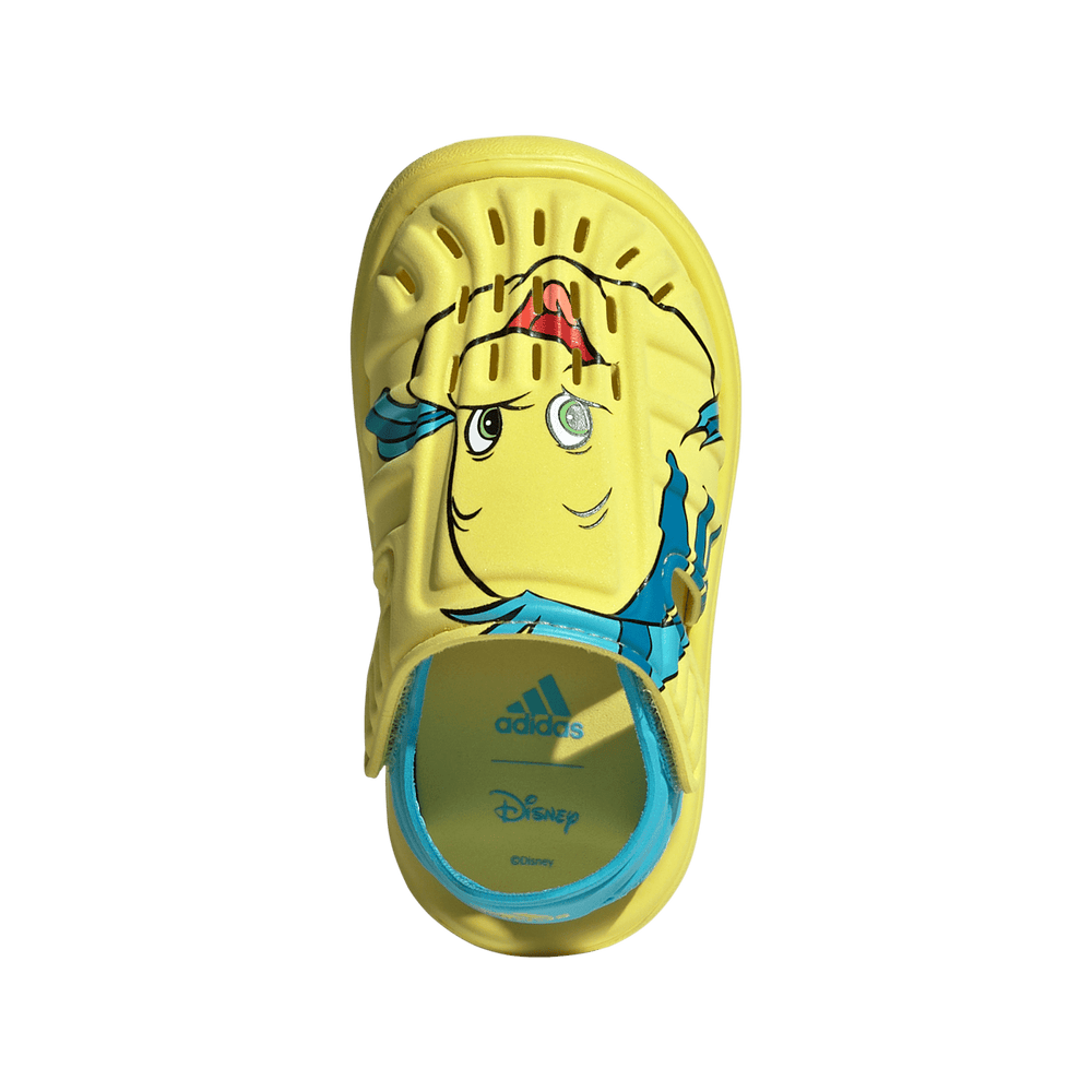 Little ones will love splashing around in these infants' sandals from adidas. Graphics featuring Disney's Flounder will delight young fans of The Little Mermaid. A hook-and-loop strap makes them easy to slip on and off, while the closed-toe design offers extra toe coverage.