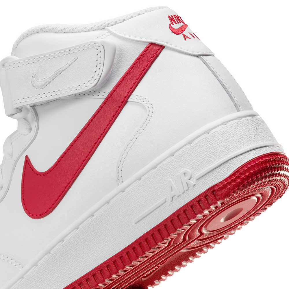 The Air Force 1 '07 Mid is everything you love best: crisp overlays, bold accents and the perfect amount of flash to let you shine.The padded, mid-height collar with classic hook-and-loop closure mixes style versatility with heritage b-ball comfort while perforations on the toe keep you cool.