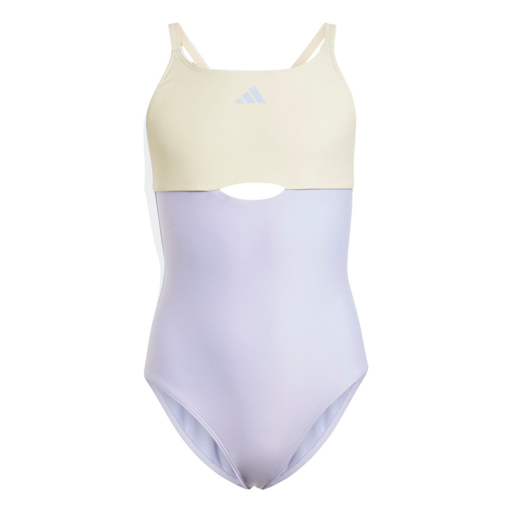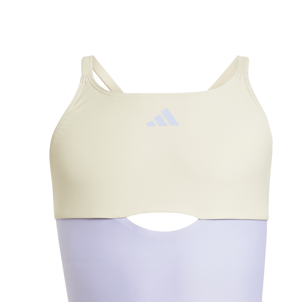 Whether they're splashing in the waves or building sandcastles, kids will be ready for beach day fun in this adidas swimsuit. The stretchy tricot fabric is chlorine-resistant and moves with them as they play. Adjustable straps give it a secure fit, and a cutout in front adds a playful touch.