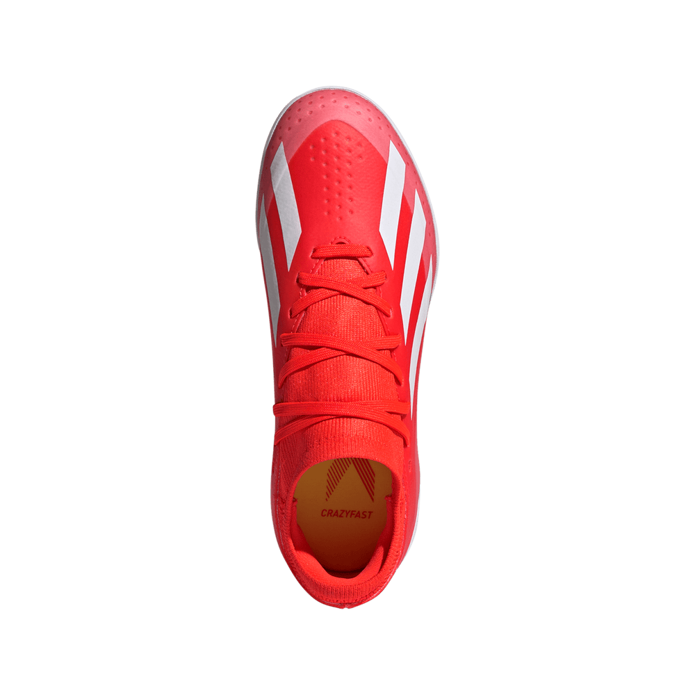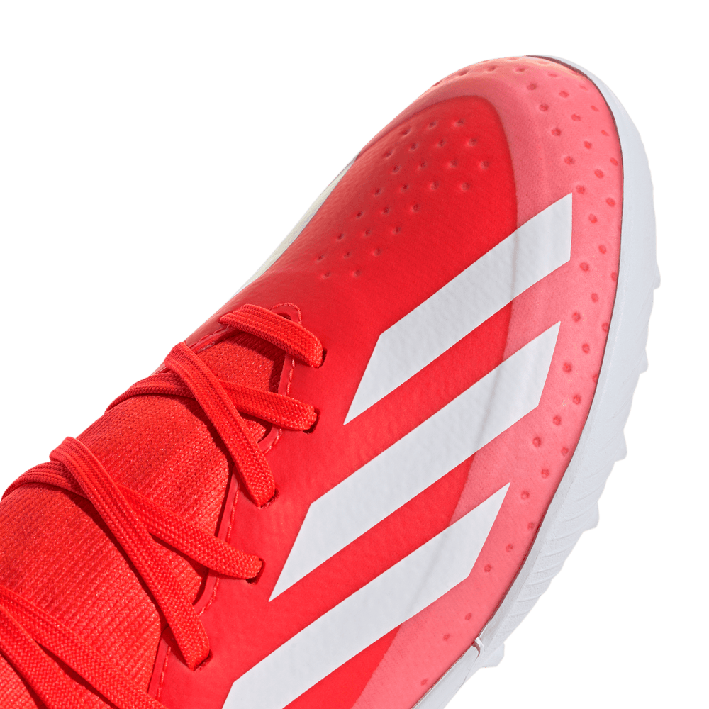 Nothing beats the rush of pure speed. Change the game in an instant and leave defenders trailing with lightweight adidas X Crazyfast. Keeping you stable at full tilt, these football boots for juniors sit on a specialist artificial turf outsole. Featuring extra layers only where reinforcement is required, their coated textile upper comes with a flat-knit collar for solid lockdown.